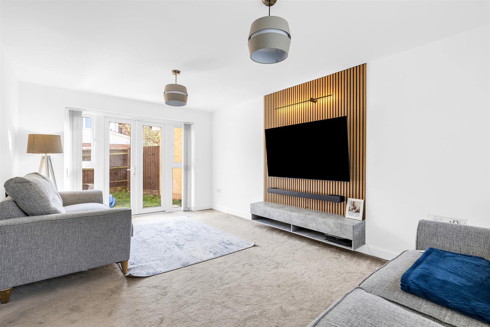 The patio doors enable a great connectivity out into the garden, making it really usable for time together as a family or when entertaining guests. Within the room there is a really large space to work with when considering your furnishing and layout plan. Generous enough to take multiple sofas and chairs and to give you real freedom to indulge yourself if you like your furniture big and comfortable. In the centre of the outside wall there is an attractive decorative panel providing an ideal setting and hidden cabling for your AV needs, accepting a flat screen TV, sound bar and multiple digital TV/DVD control units.