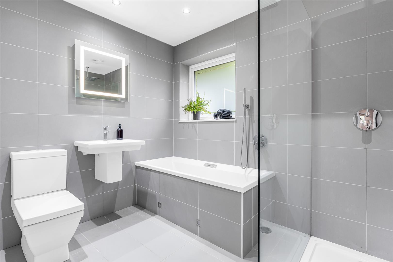 The first floor, like the ground floor, enjoys a split level arrangement with a short flight of stairs between the two levels. Both hallways are well lit by a front facing window and lead to the four bedrooms and the immaculate family bathroom, which boasts a separate bath and shower. Three of the bedrooms are generous doubles in size, each of which benefits from substantial fitted wardrobes. One of them also has useful eaves storage.