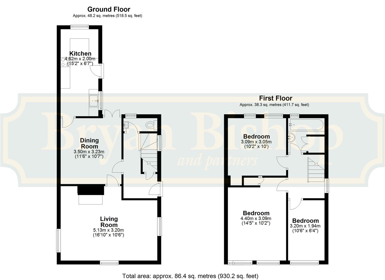 Upstairs the hallway, nicely lit by a window to the side, opens onto the three bedrooms and the family bathroom, which has a bath with shower attachment and screen. Two of the bedrooms are comfortably large enough to be doubles, both of which enjoy multiple windows.