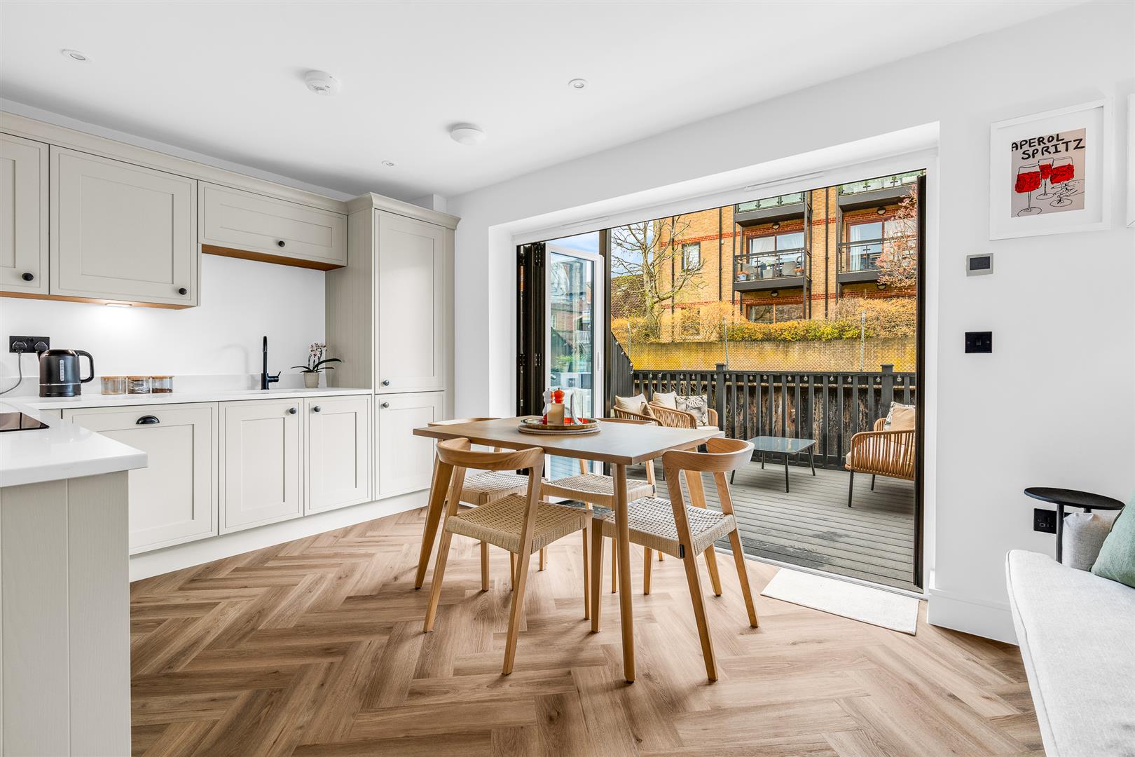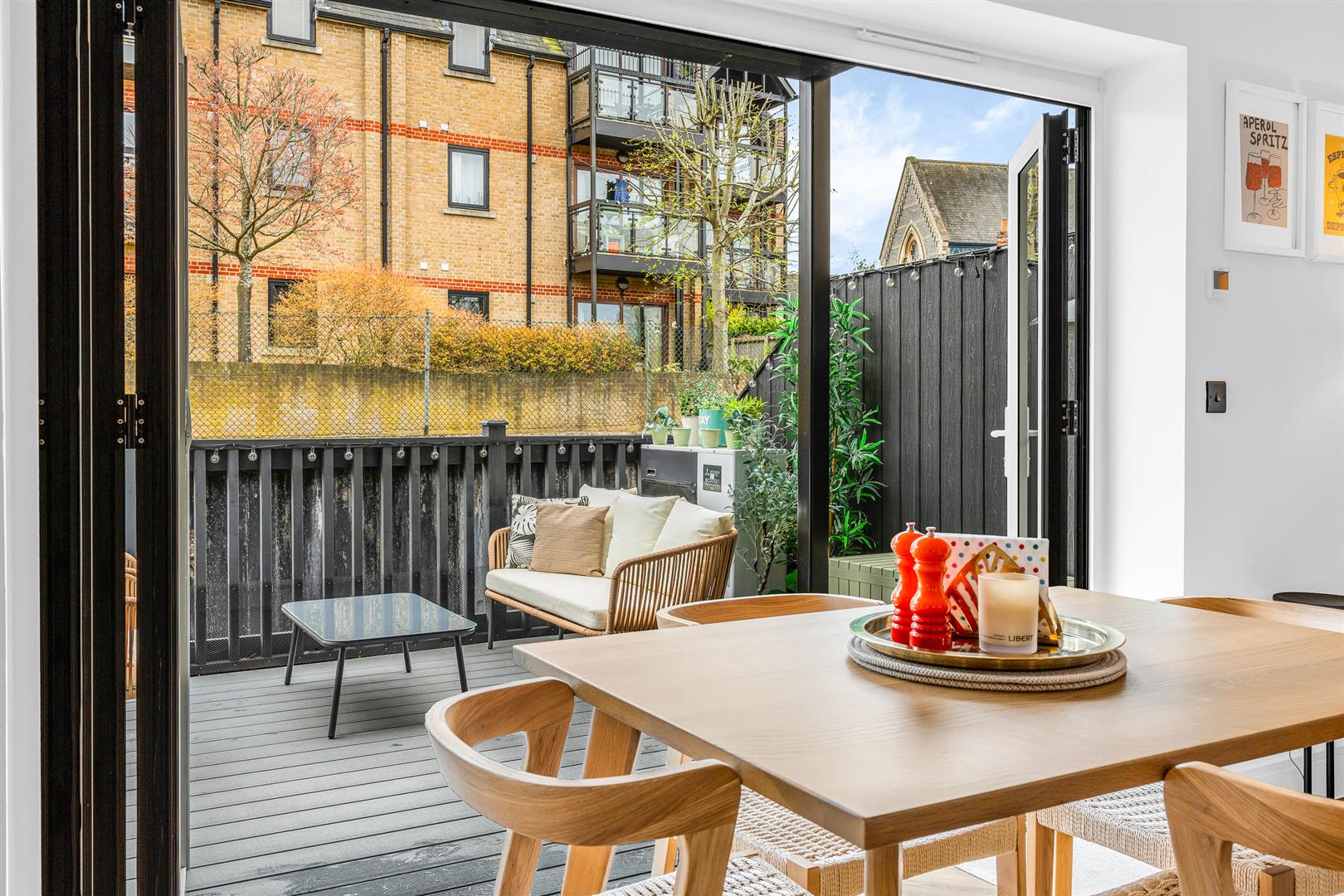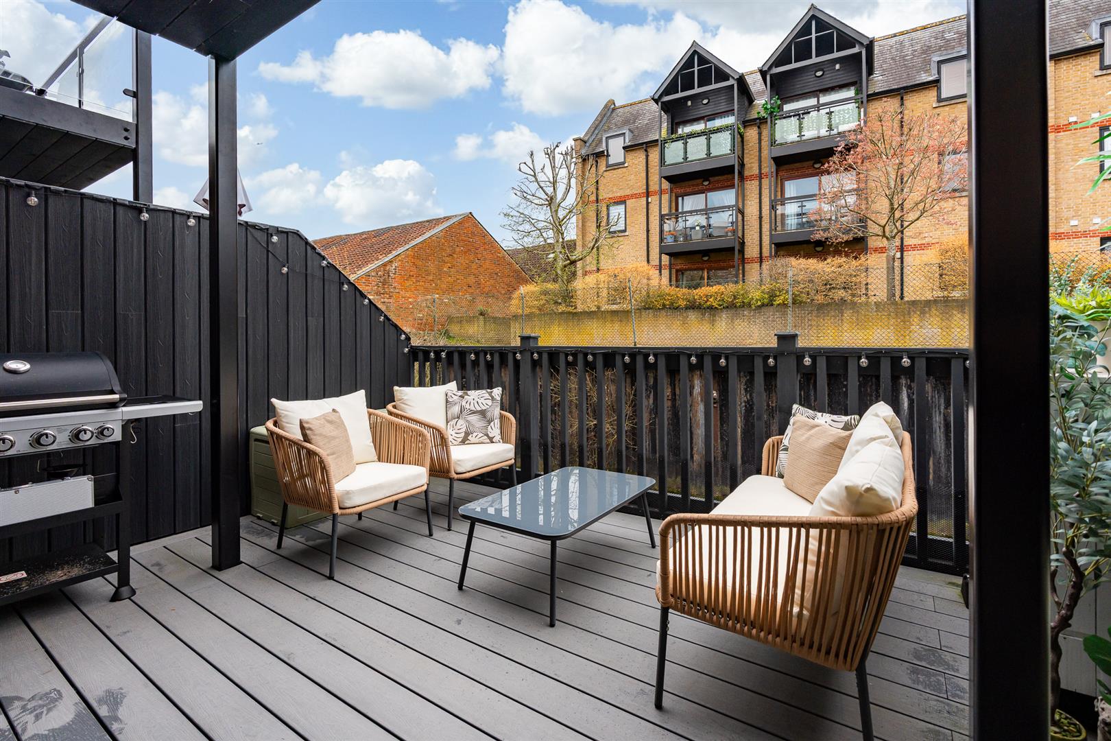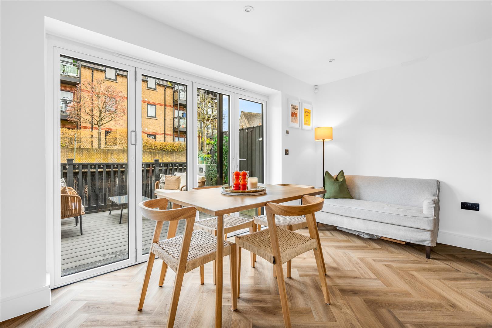 The terrace is a wonderful additional feature offering charming outside space in a zero maintenance environment. Partially protected from the elements by your own balcony accessed from the rear first floor bedroom above, and supplied with weatherproof decking and an outdoor power connection, this large terrace really elevates the house above its peers, with a fluid inside/outside flow and a nice open aspect making it a great place to eat, drink and hang out with friends and family well into the late evening.