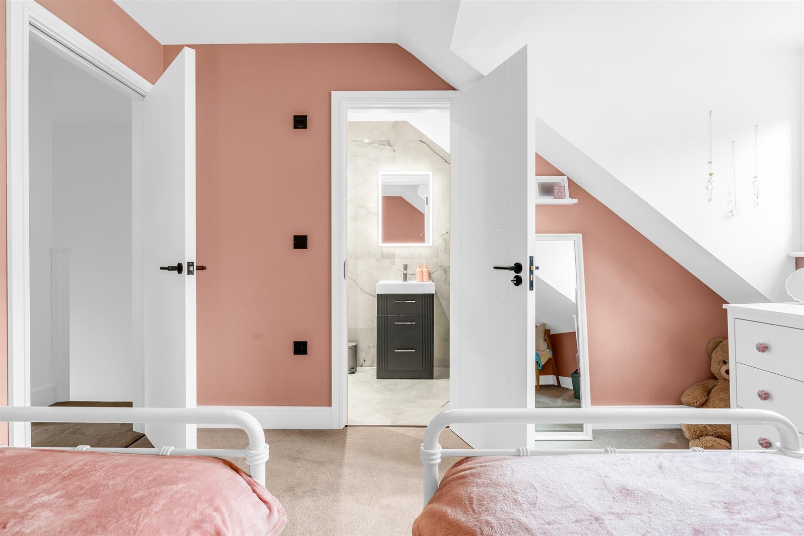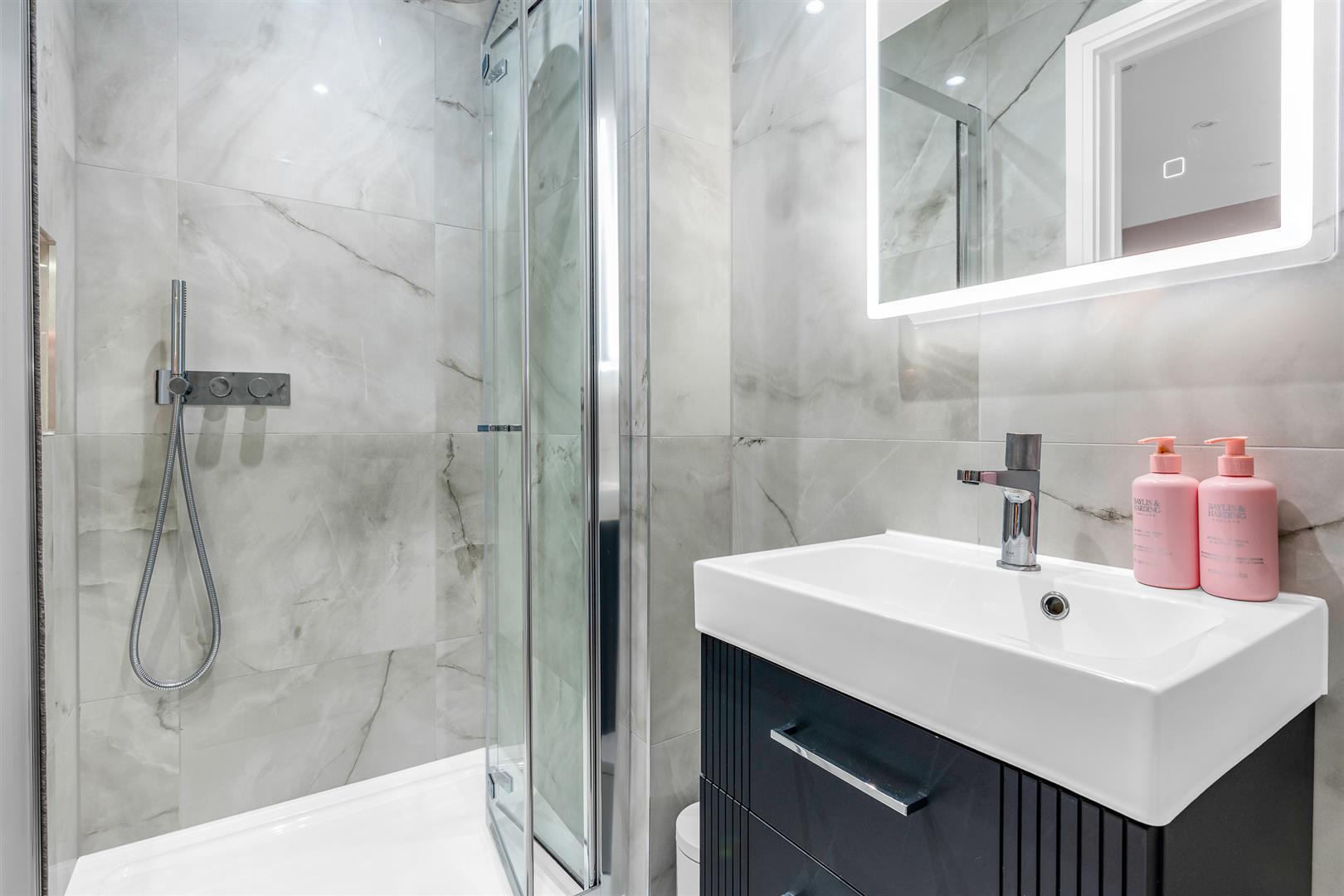 A further flight of stairs climbs to the second floor, which contains two double bedrooms, one of which is blessed with a fully tiled en-suite shower room complete with a heated towel rail.