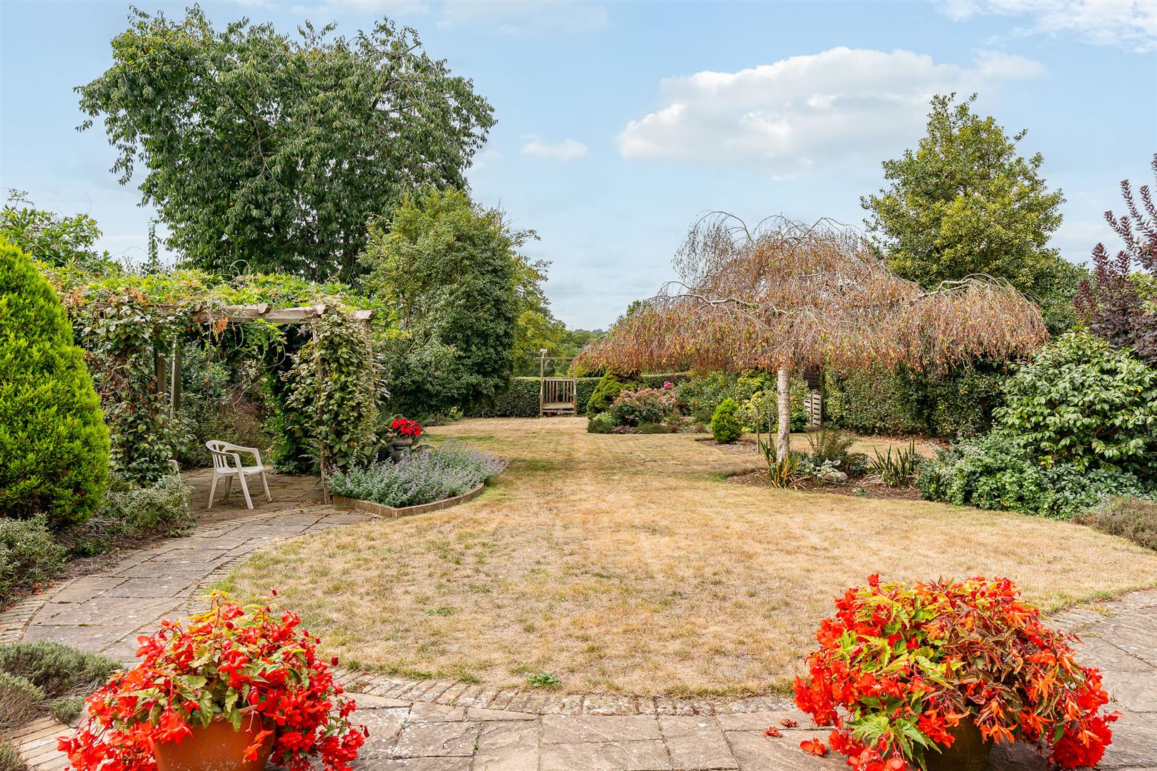 The attractive frontage features a low level brick wall surrounding a pretty front garden full of a variety of plants, shrubs and specimen trees. To one side a large driveway opens into a spacious parking area able to provide parking for at least three cars, but it could be extended to provide parking for six or seven cars. To the other side a decorative wrought iron gate opens into the gardens which are skilfully designed with a number of scalloped flower beds matching the organic shaping of the substantial patio. The gardens are an absolute joy, with an expansive lawn flowing in and out of the borders all along its length, culminating in a neatly clipped hedge at the rear boundary. There are extensive views of open countryside to be enjoyed, but the star of the show is the wonderful planting, bringing together myriad shapes, sizes and colours of plants, bushes and trees in a perfectly curated display.