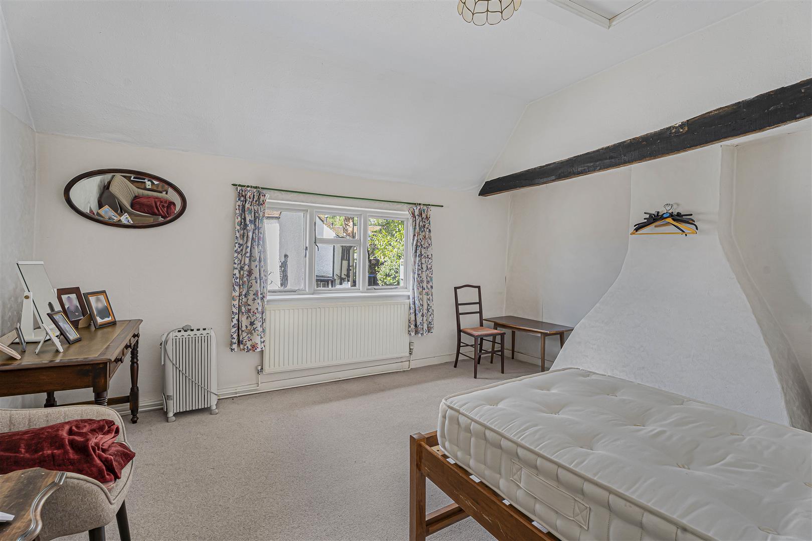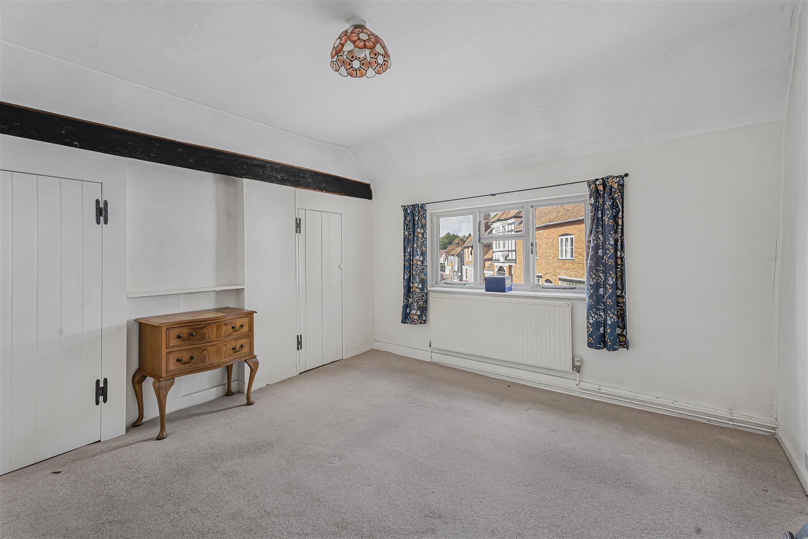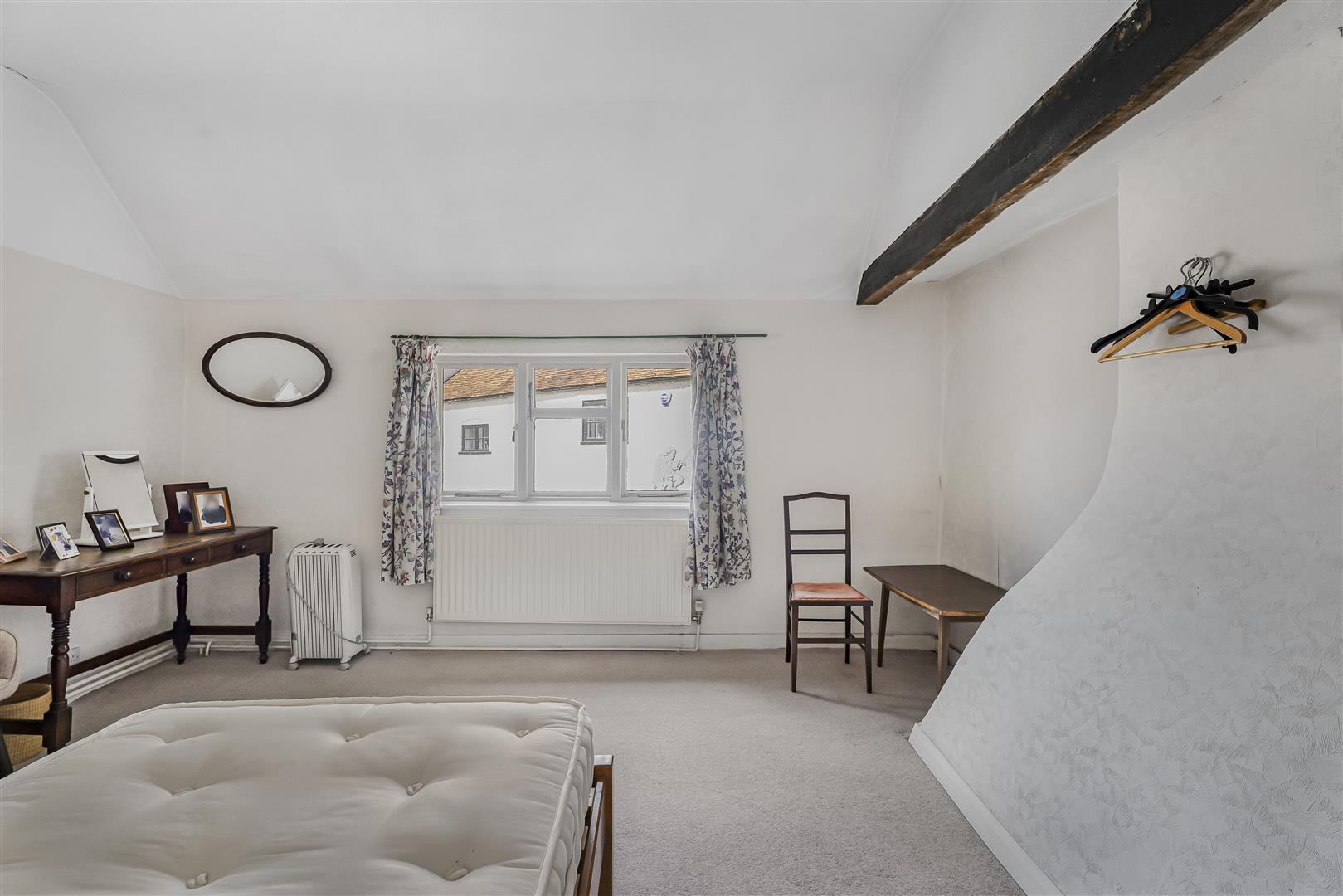 Upstairs there are three bedrooms and a neat shower room. Two of the bedrooms are front facing and benefit from commanding views to the High Street. They are generous doubles in size, both showing off exposed beams set into the ceilings, with one of them enjoying the wonderful period feature of the extravagantly shaped chimney breast gracing the outside wall. The third bedroom is a single which would also be ideal for a home office or nursery.