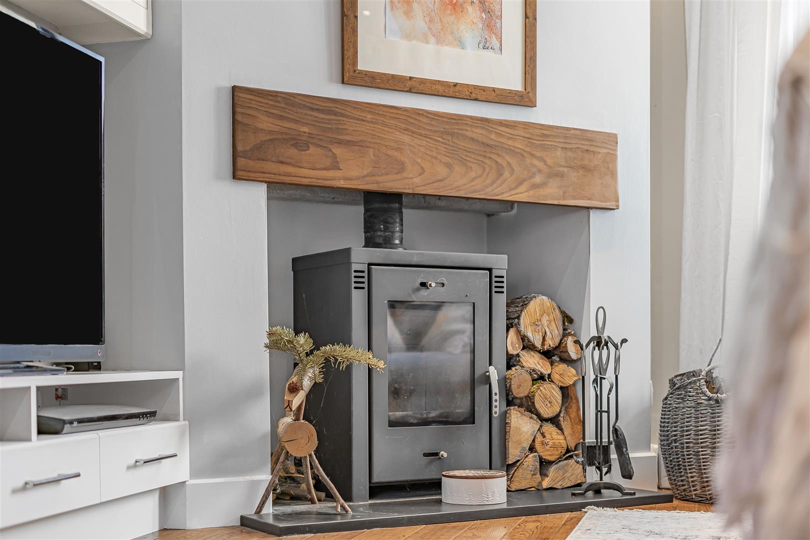 Taking the full width of the central part of the house, accessed from the hallway through attractive double doors with opaque glazed panels, is the fabulous living room. This is a large room by any measure at over twenty-six feet long, but is still bathed in natural light throughout the day from the windows at either end of the room, and enjoys nicely balanced as well as generous proportions. A stylish modern chimney breast is set across one corner of the room, hosting a sleek log burner beneath a contemporary solid wood bressumer beam, providing an elegant focal point as well as cosy winter warmth. Comfortably large enough to accept a number of sofas and chairs, as well as other occasional furniture besides, this charming room presents multiple options as to how you furnish and configure it to best suit your needs.