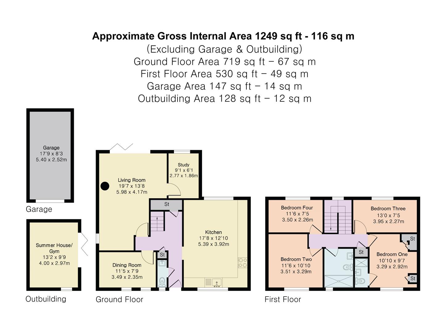 Upstairs there is a light and airy hallway lit by a rear facing window that leads to the four bedrooms and the family shower room. The main bedroom has fitted wardrobes and an en-suite shower room.