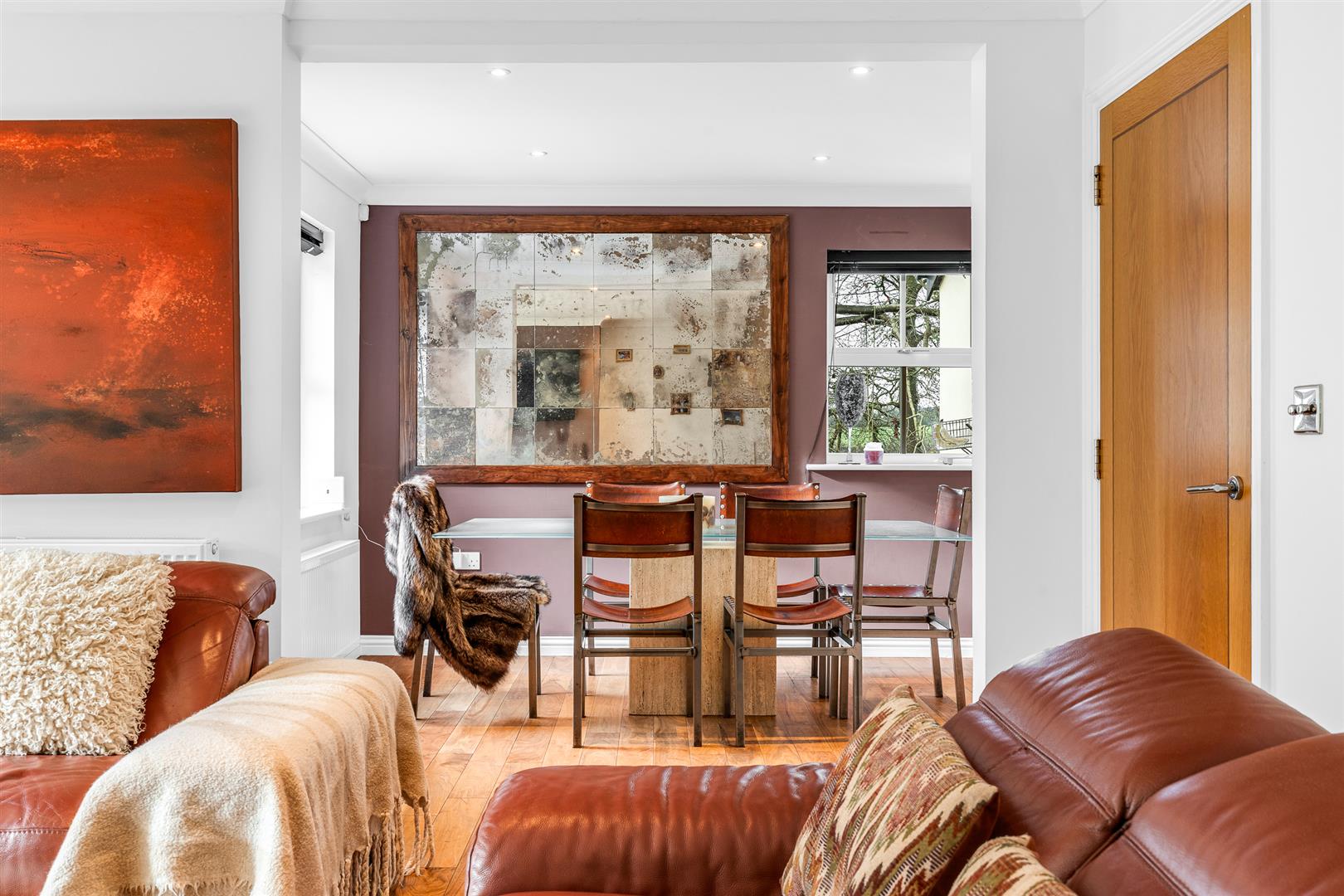 A stylish set of doors that slide back into the wall cavity separate the kitchen from the adjacent dining room, which is linked open plan to the living room and office/study, but benefits from a clever layout that enables an easy segregation of the spaces as well as a seamless movement between them. The dining room, like the whole of this terrific house, maximises the light with two windows in two separate aspects and is comfortably large enough for a generous dining suite. Its position linked to the kitchen makes it an ideal dining area whatever the occasion, also benefiting as it does from the smooth transition through from the living room when entertaining family and friends.