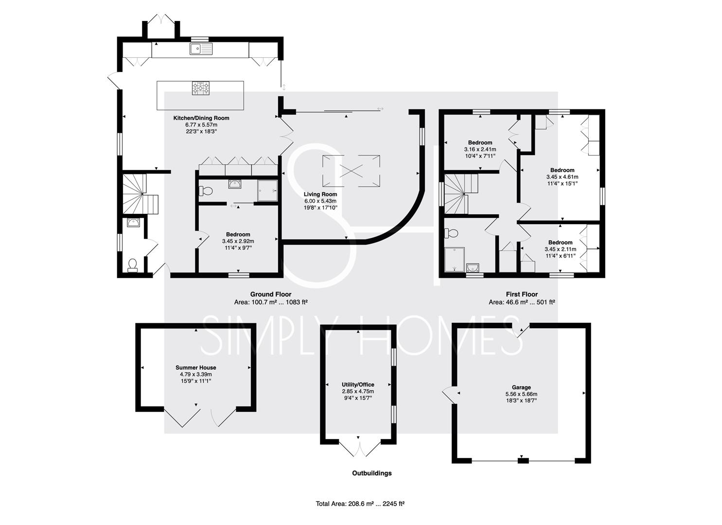 Simply Homes are delighted to bring to the market this stunning four bedroom, two bathroom detached family home in the highly desirable village of Epping Green. Set within a select development of a small number of luxury residences, the house offers flexible and generously proportioned accommodation that is further enhanced by a large detached summer house and a separate office/utility room within the extensive wrap around garden, as well as a substantial area for parking and a detached double garage/workshop. Presented in immaculate condition inside and out, this is a home that can easily cope with multi-generational family life thanks to the downstairs bedroom that has its own en suite shower room, as well as the spacious ground floor rooms that give a nice easy flow around the space and connect seamlessly out into the substantial patio areas that surround the main house.