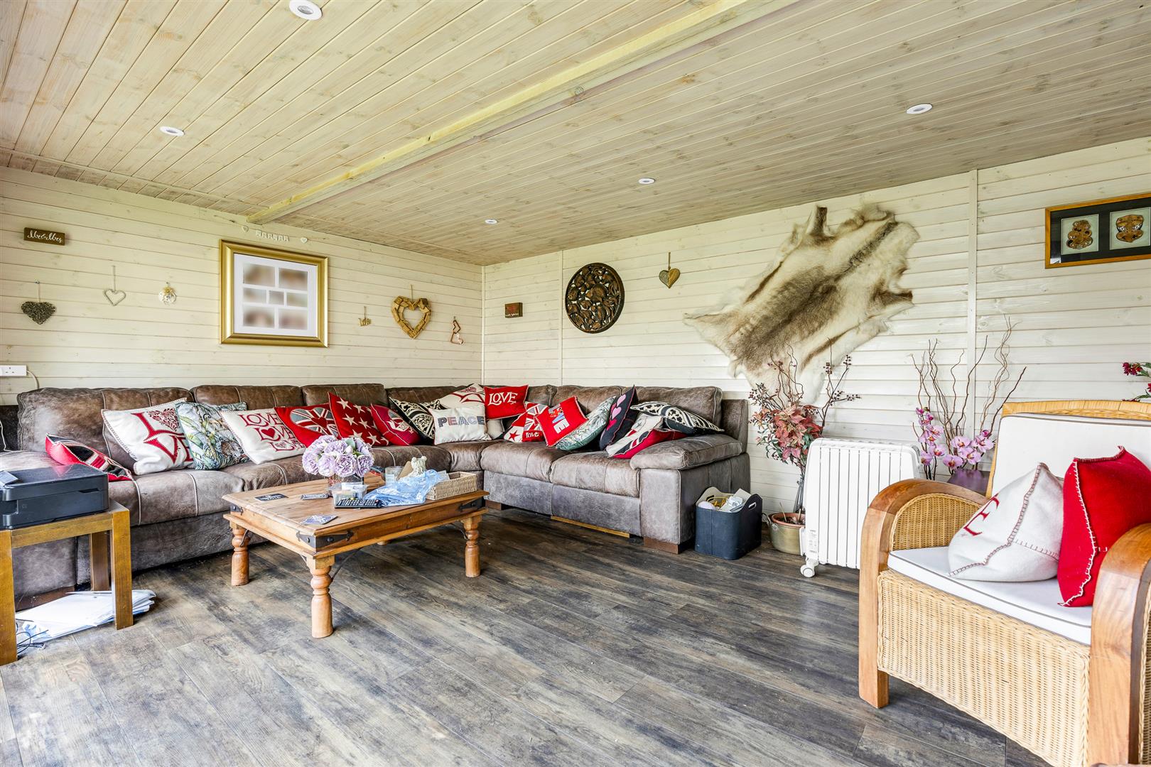 Within the garden is a large detached summer house with light and heat fitted that makes a superb additional lounge, but would also perform admirably in a number of alternate functions, such as a gym, craft studio, music room, games room, teenage hang out space or a guest bedroom. It has infinity doors, fully glazed, opening out into the garden, which would also make it a fabulous entertainment space/bar area. Alongside the summer house is a further detached timber building with glass double doors, making a great office/utility room.