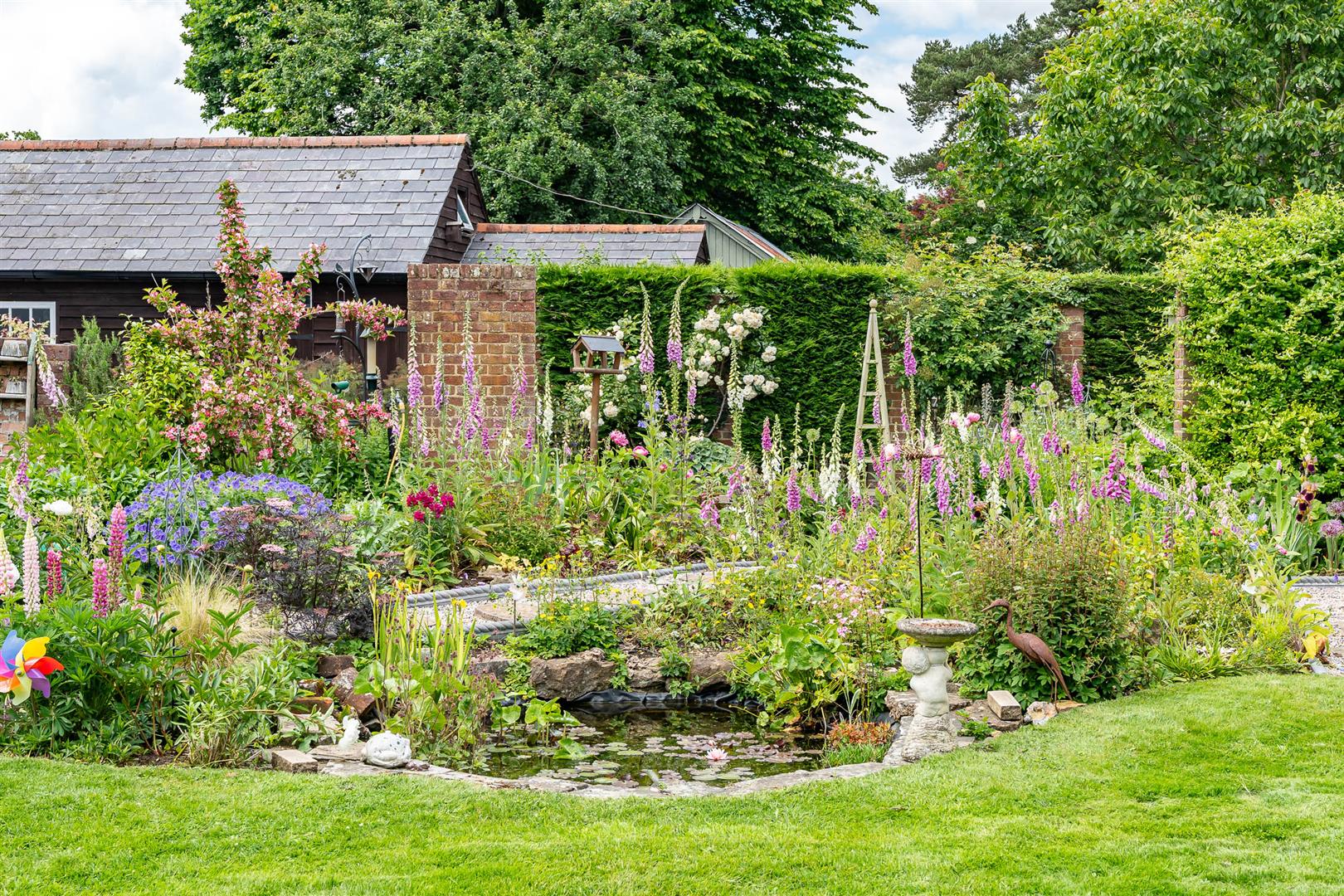 Set in gardens of around half an acre, the house has a number of outbuildings within the grounds, including a large garage and numerous other storage units and a workshop. The garden is a beautiful amalgam of sweeping lawns, sheltered patio areas and curated flower beds filled with an absolute riot of colour and form. Mature hedges and trees line the boundary of the garden offering much privacy and a woodland walk also offering extra interest. A large kitchen garden provides ample opportunity for growing cut flowers and vegetables for the kitchen. The gardens are commensurate with the house, enjoying lovely proportions along with a tranquil and elegant setting for all occasions.