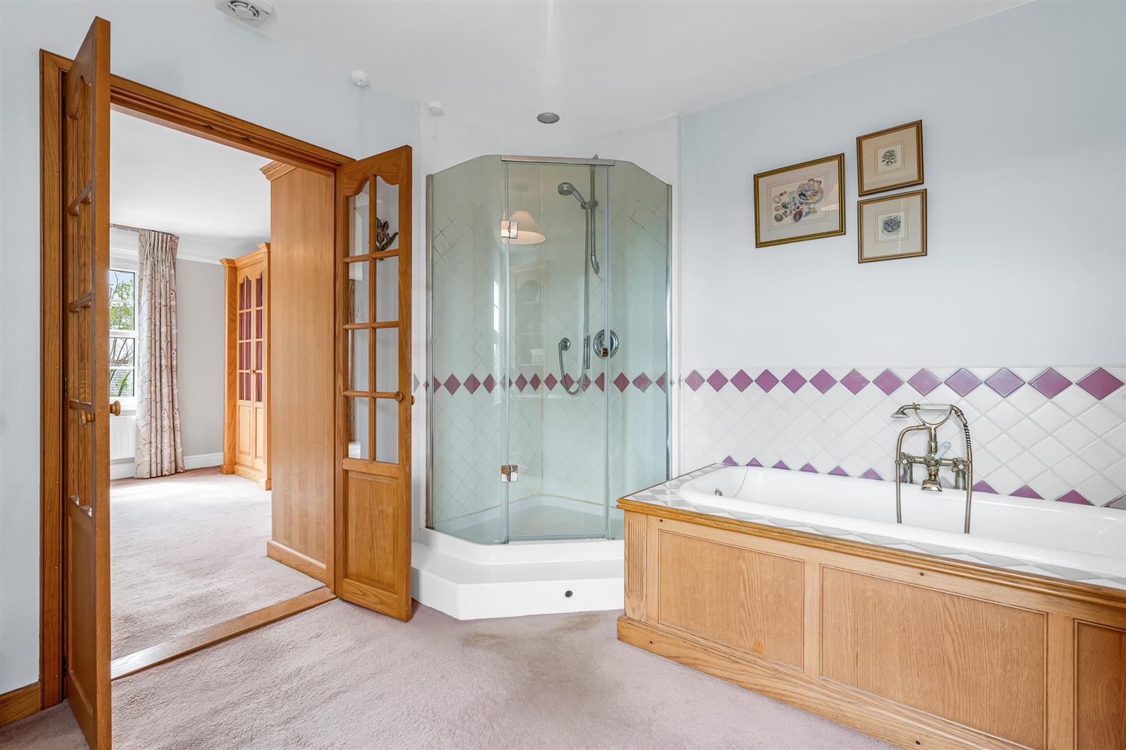 Upstairs there are five bedrooms, all of a generous size, as well as a family bathroom, a family shower room and a separate W.C. The two largest bedrooms both enjoy stunning circular bay window arrangements, with the main bedroom suite, an absolutely stunning space, also boasting a large dressing area, fully fitted with multiple wardrobes, and a substantial en suite bathroom with separate bath and shower.