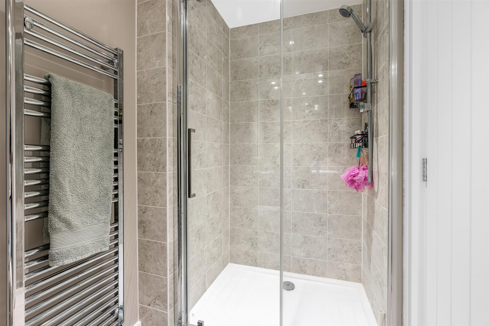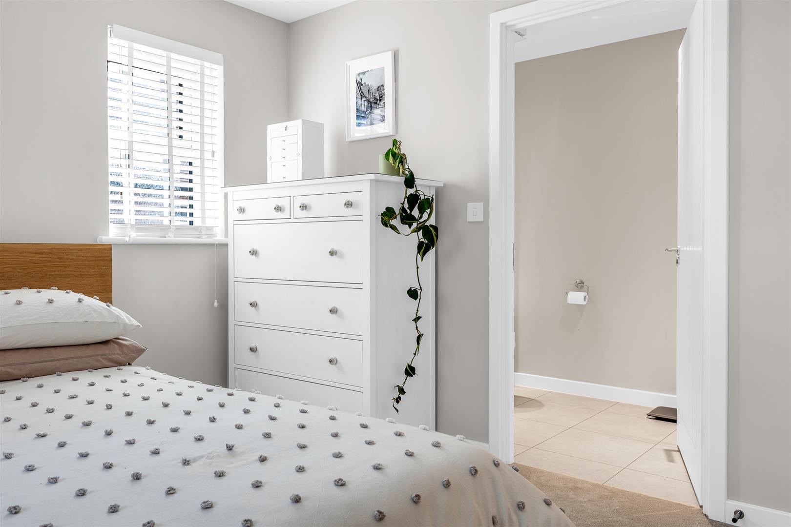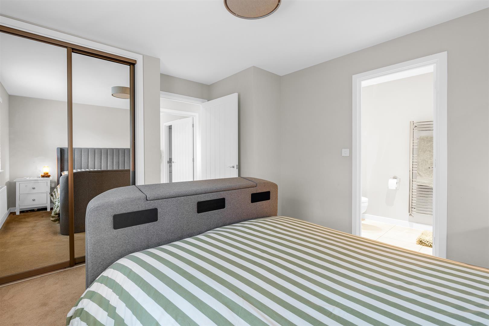 Upstairs, the first-floor landing leads to two well-proportioned bedrooms, each benefiting from its own neatly finished en-suite bathroom. The principal bedroom also includes a fitted wardrobe for added convenience. A large storage cupboard and an airing cupboard further enhance the functionality of the first-floor layout.