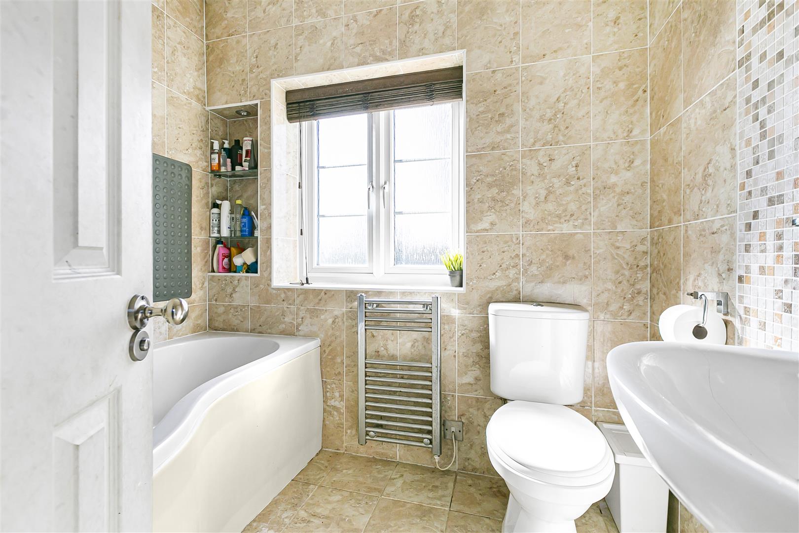 The kitchen/dining room occupies the rear of the house, and so benefits from a window to the side as well as a set of glazed double doors to the rear, a really valuable bonus of this house being at the end of the terrace. The kitchen has a large area fully fitted with a comprehensive range of wall and floor mounted cupboards, giving ample storage space and plenty of food preparation worktop area, whilst incorporating a full complement of integrated appliances at the same time. A neat ergonomic design enables the fitted kitchen to occupy one end of this generously proportioned room and still leave plenty of open floor space for a family dining table to enjoy the lovely setting between the patio doors and side window, also leaving plenty of room for easy access in and out of the dining area into the garden.