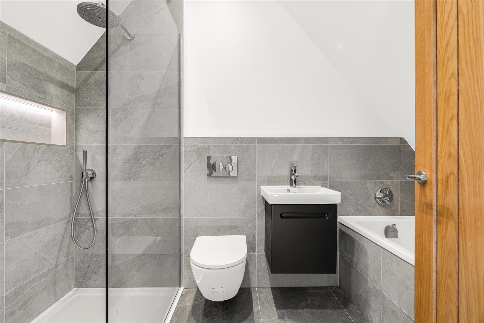 Up on the first floor are two very large bedrooms, both of which have front and rear facing windows, and a superb family bathroom with a separate bath and shower. The principal bedroom also boasts a luxury en-suite bathroom with a separate bath and shower.