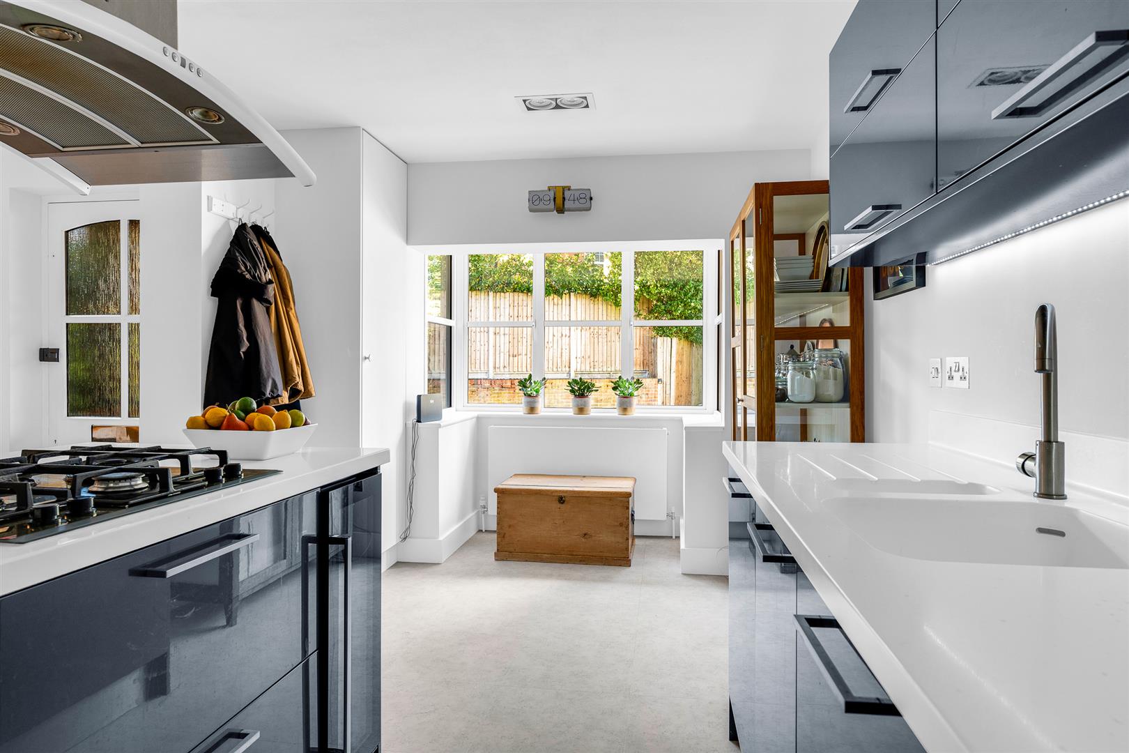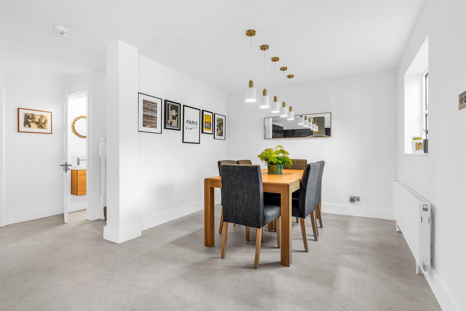 To the rear, a superb 22ft living room stretches the full width of the house. With French doors, tall windows and a bay flooding the space with natural light, this impressive room is bright, adaptable and spacious enough to host multiple seating or dining zones. A guest cloakroom completes the ground floor.