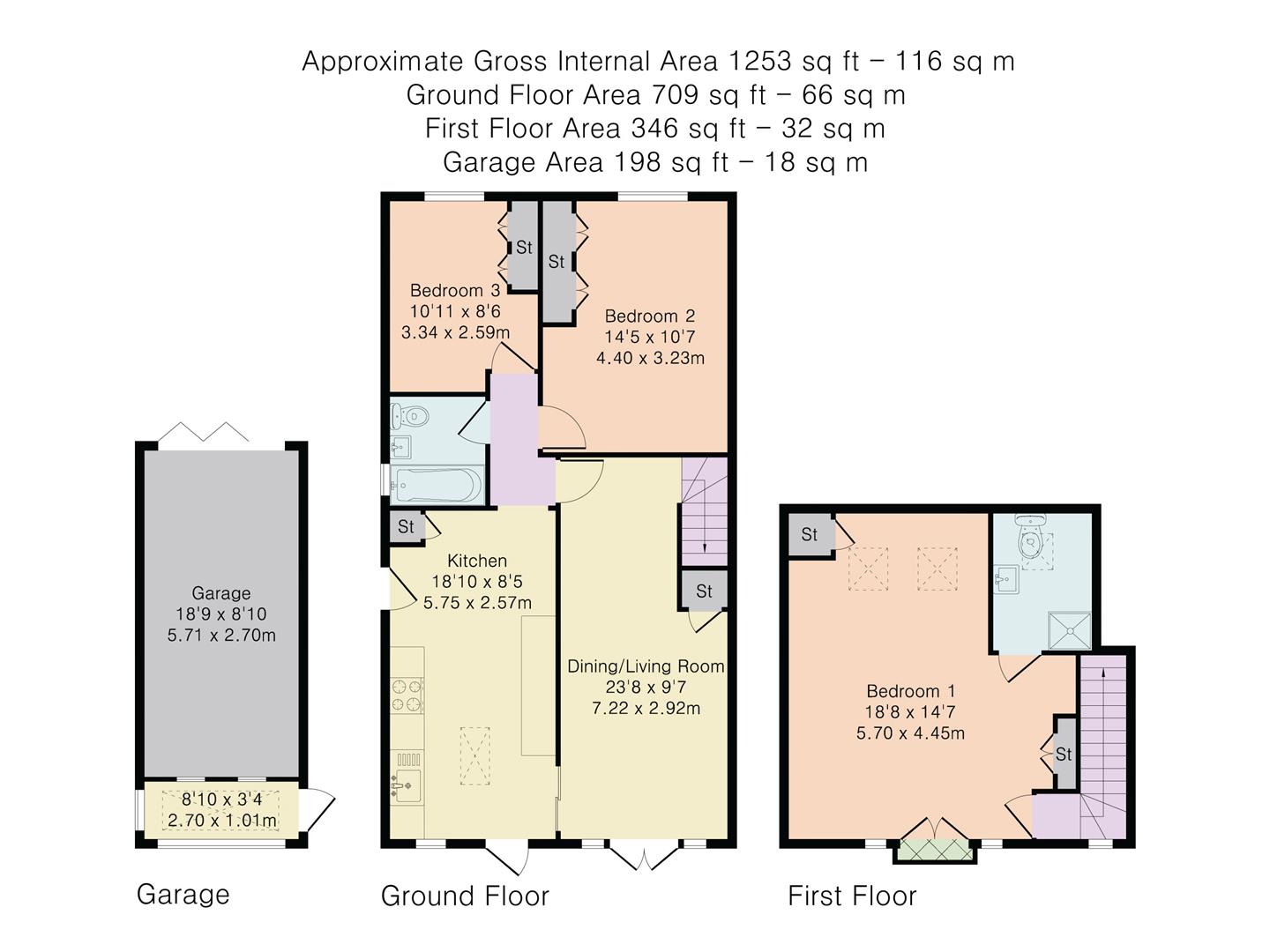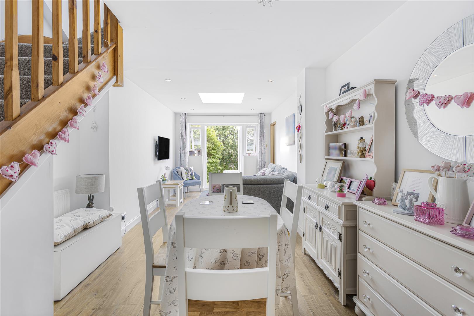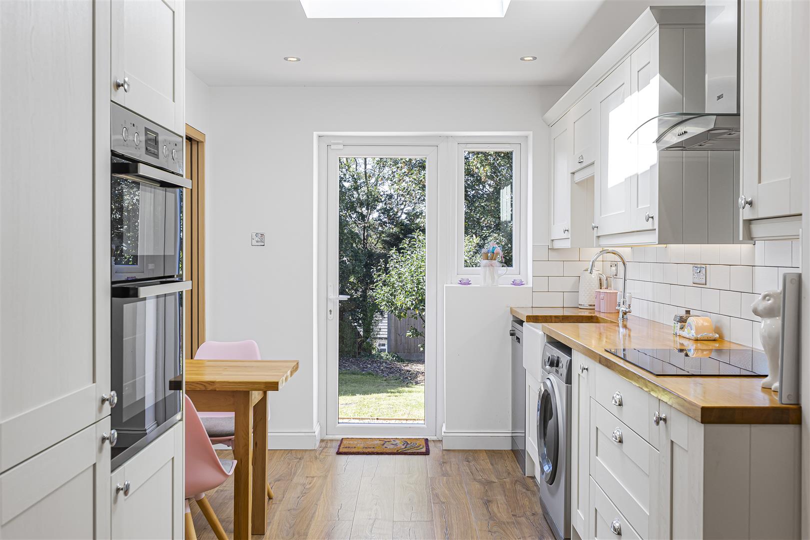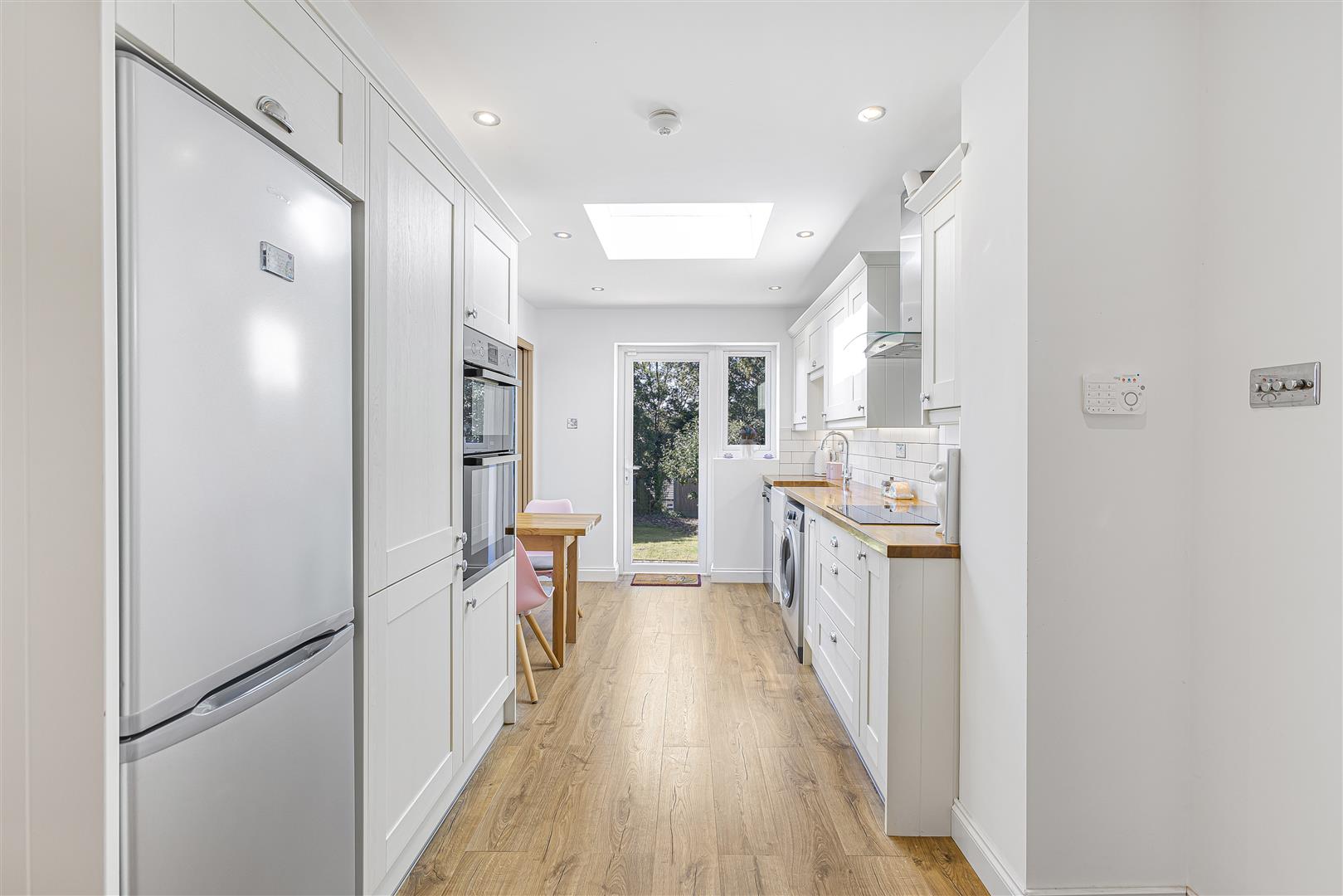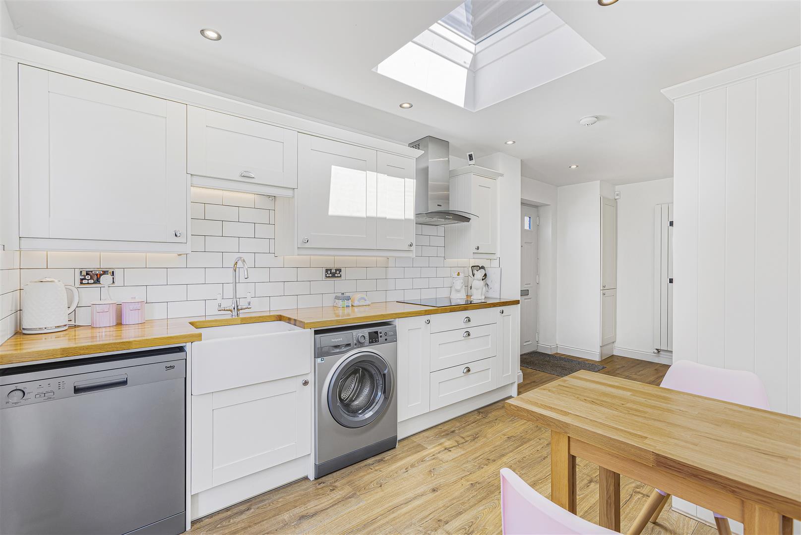 Enter via the recently re-modelled kitchen/diner, featuring a range of base and eye level units, wooden worktops, various integrated/freestanding appliances and a singular rear door to the garden. A set of internal sliding doors lead to a brilliant sized living room with further built-in storage and set of French doors leading out to the rear garden. An inner hallway leads to two front aspect double-bedrooms, with both bedrooms featuring fitted wardrobes and one of the bedrooms currently serving as a playroom. The ground floor bedrooms are served by a smartly finished family bathroom.