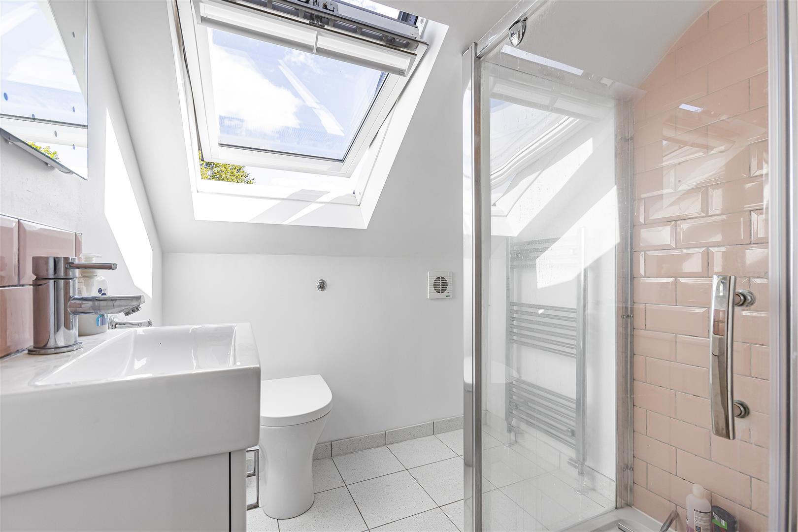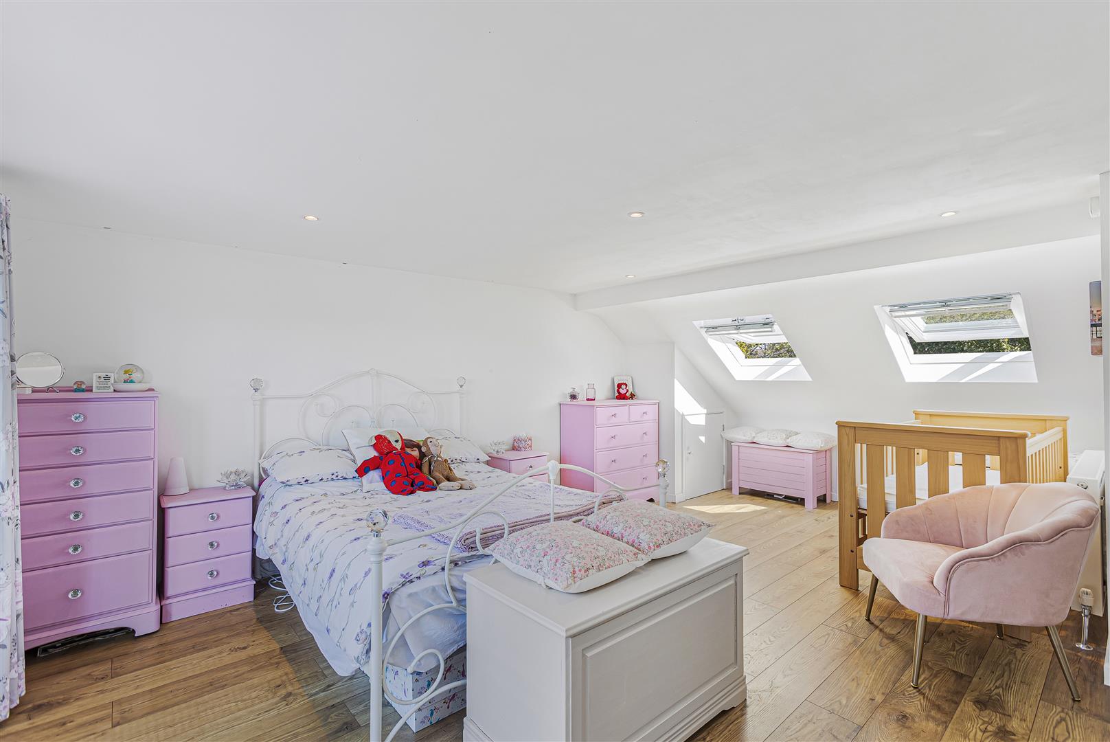 To the first floor, an almost 19ft principal bedroom featuring a contemporary en-suite. The bedroom continues the trend of the house being light and airy with use of a rear aspect Juliet balcony and dual Velux windows.